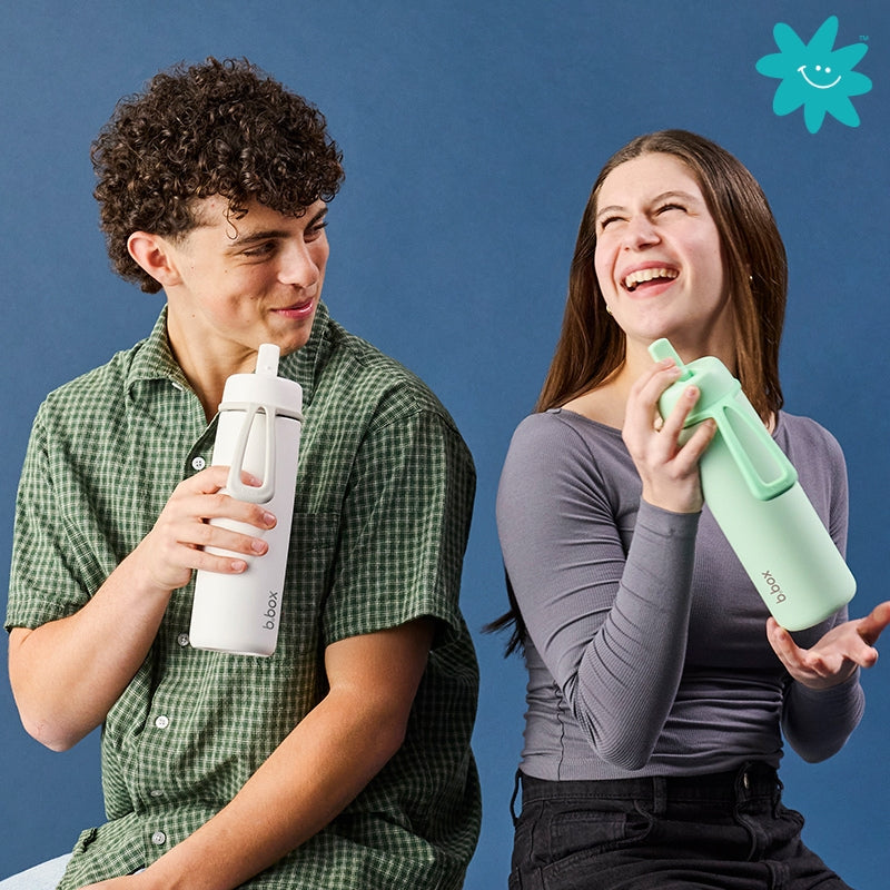 - Flip top lid for free-flow drinking with stainless steel straw
