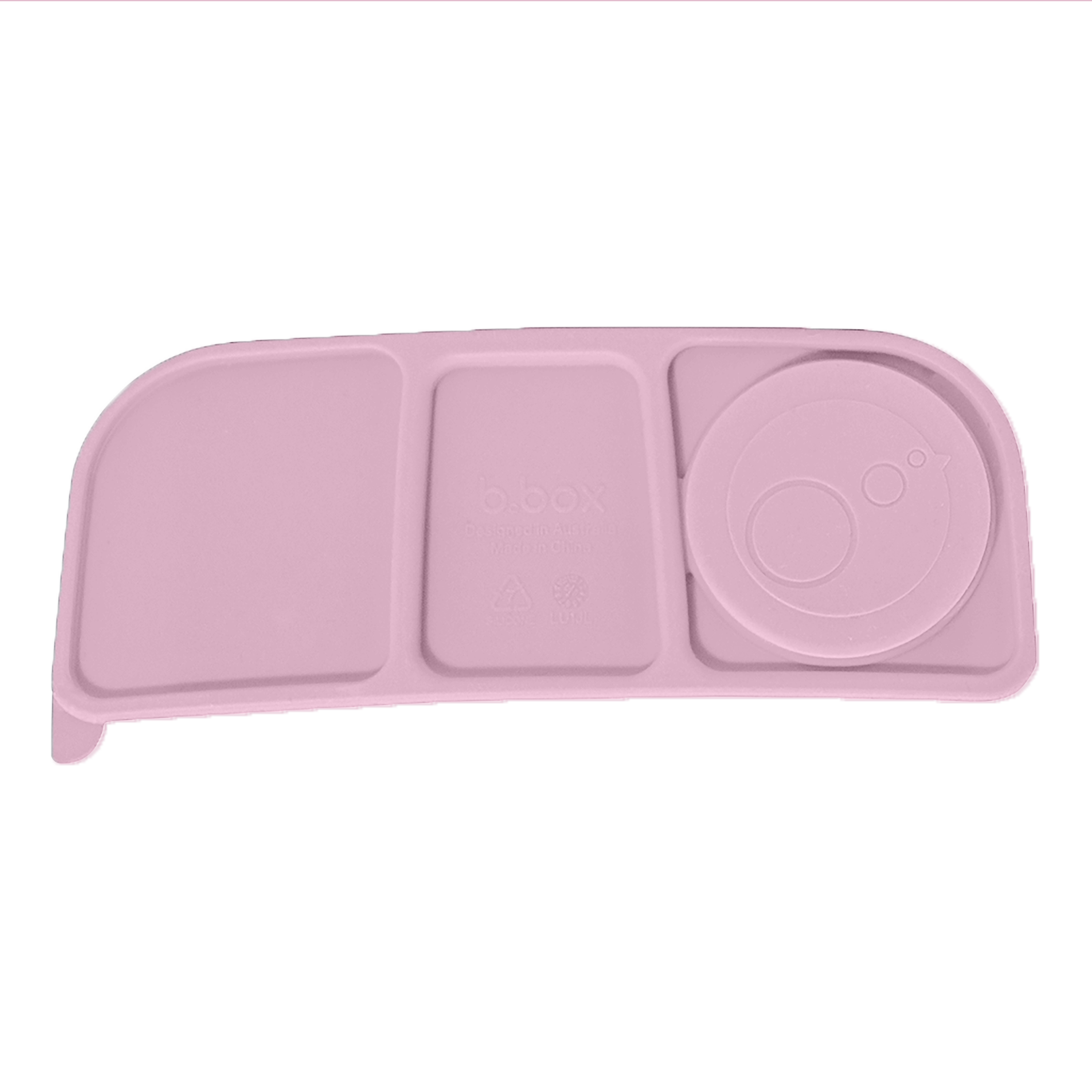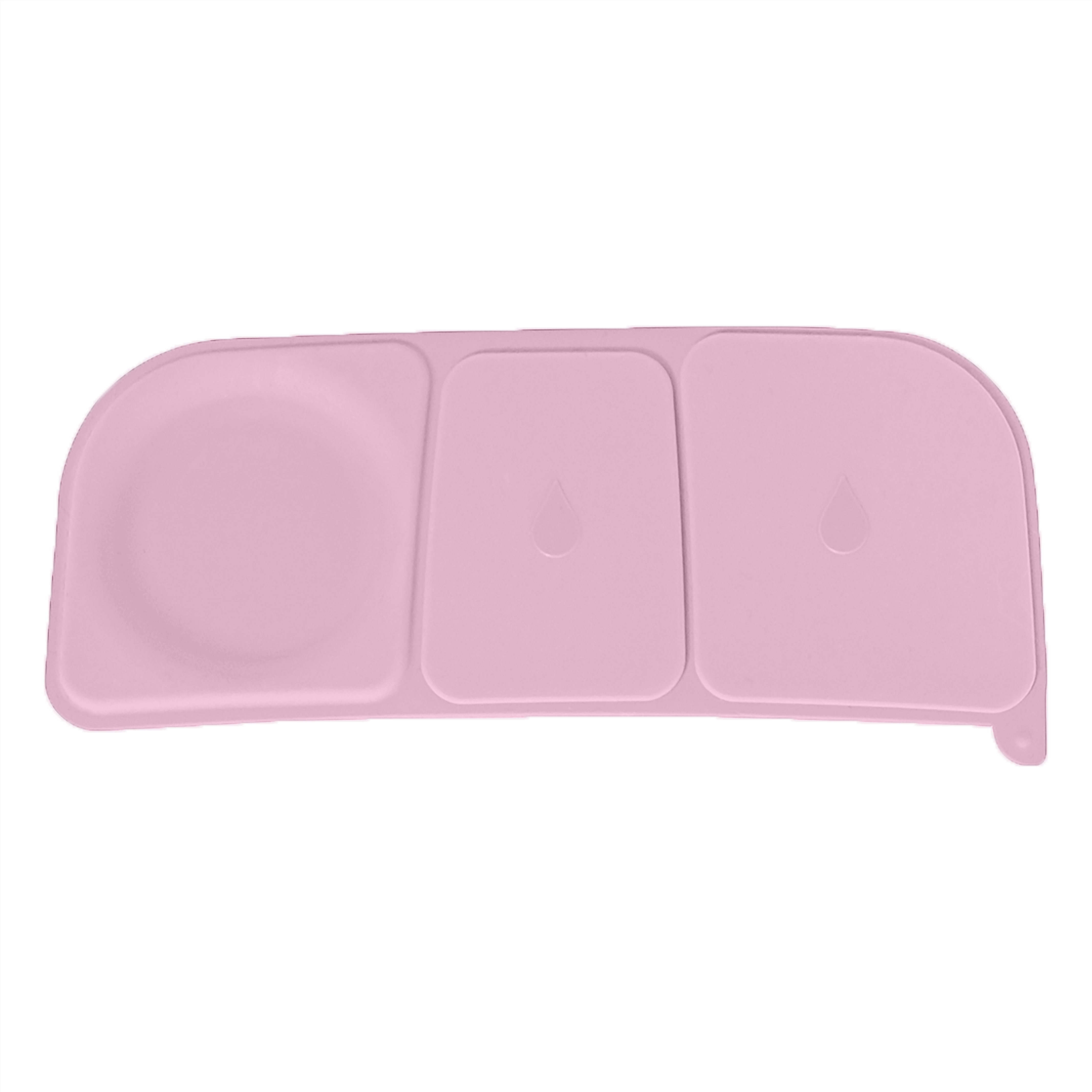 Our pink snack container with a circular red seal on the lid, designed for holding snacks with a whole fruit holder. Our pink snack container with a circular red seal on the lid, designed for holding snacks with a whole fruit holder.