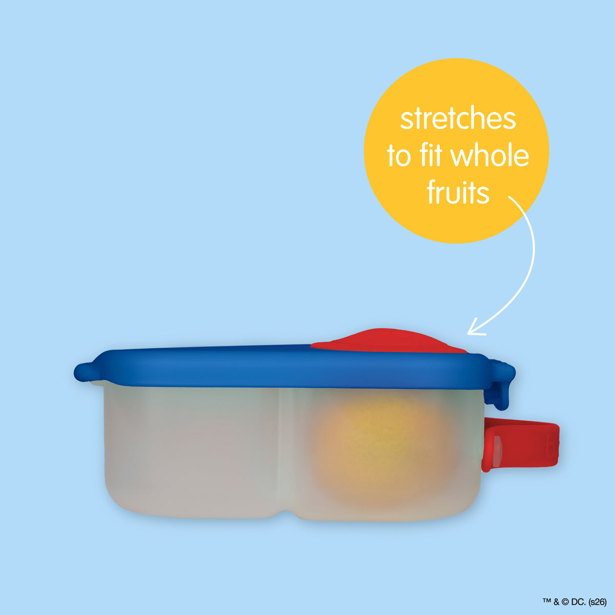 The flexi whole fruit section stretches around fruit so you can secure large fruits inside the lunchbox. 2 leakproof compartments seal separately so packing a mixture of wet and dry foods such as puree, yoghurt and dips, has never been easier.